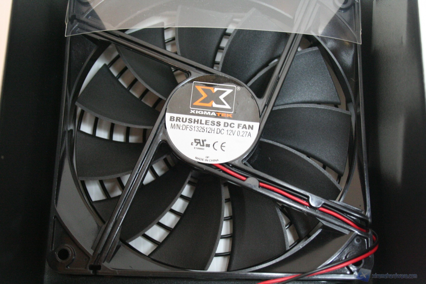 E’ stata scelta una ventola da 135mm marchiata Xigmatek ed avente M/N: DFS132512H DC 12V 0.27A. Questo modello è davvero molto valido in quanto è montato anche su alimentatori di fascia più elevata, quali ad esempio il Cooler Master Silent Pro Gold 1000W. Ha uno Sleeve Bearing e la rotazione massima è circa 1800RPM, con una rumorosità teorica di 36,28 dBA. La conformazione non è affatto classica in quanto presenta 11 pale con un profilo ricurvo ed un ottimo sfruttamento del flusso d’aria, generando quindi un buon quantitativo di CFM rispetto ad altri modelli, con una rotazione minore. Il colore è nero. Data l’assenza di un simulatore di carico dedicato, purtroppo non possiamo fornirvi misurazioni dirette, anche perché la rumorosità del sistema di test era molto superiore a quella dell’alimentatore. Comunque sia la rumorosità non sarà una peculiarità di questo modello