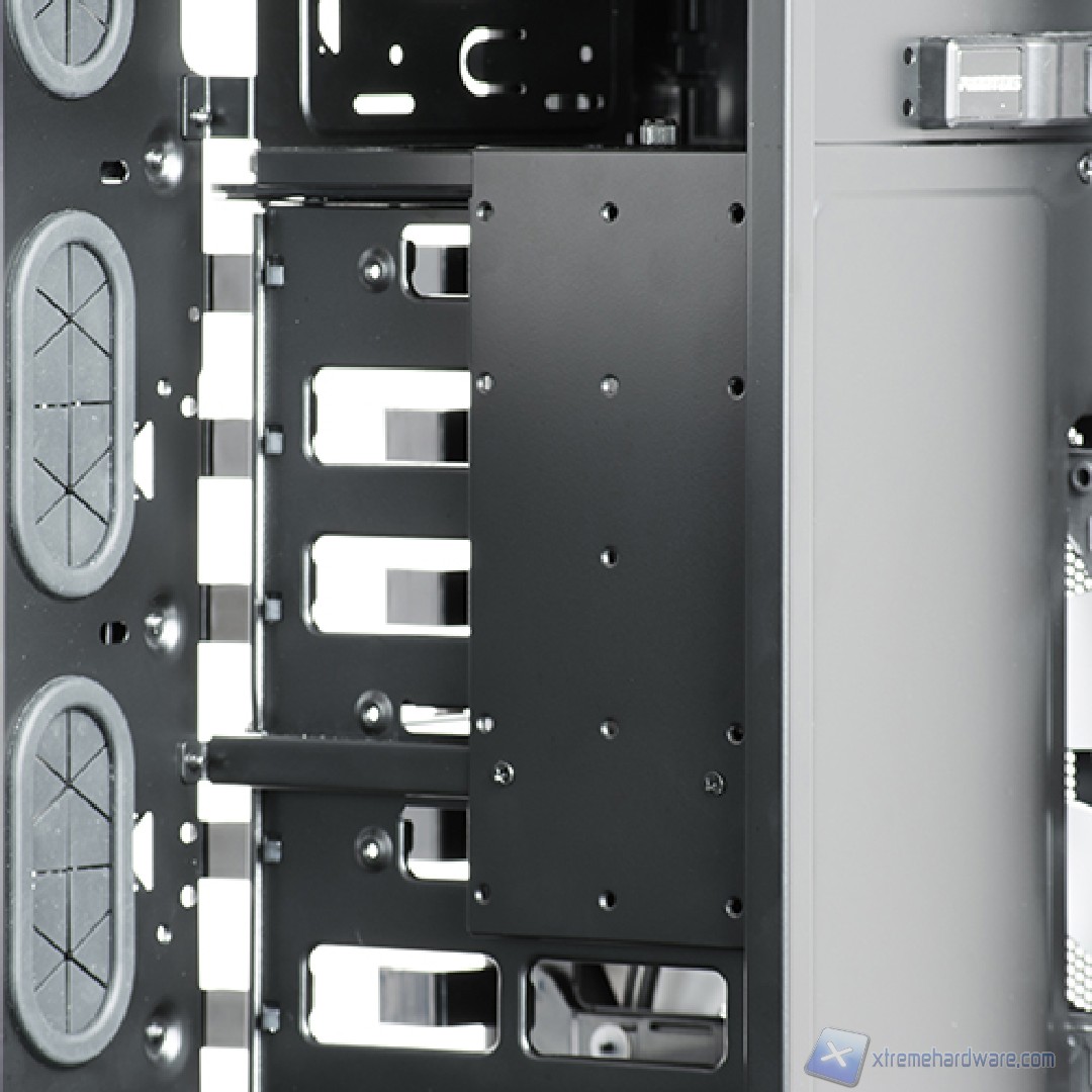 Il Phanteks Enthoo Pro ha in bundle una staffa per poter avvitare i supporti per vaschette cilindriche, accessorio sicuramente non comune tra i case di questa fascia di prezzo, ma neanche tra quelli di fascia superiore e che mette in evidenza come Phanteks abbia studiato il case anche per gli appassionati di watercooling.