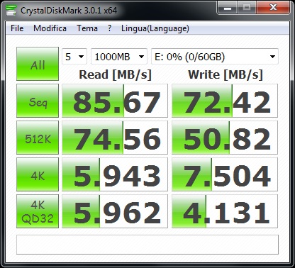 In questa sezione misuriamo le velocità di trasferimento sia sulle porte USB2.0 che sulle più veloci USB3.0. Per la rilevazione abbiamo scelto due tool ormai conosciuti e adottati come standard: ATTO e CrystalDiskMark. Per la modalità Turbo ci siamo avvalsi del tool nativo ASUS. Il test è stato eseguito su una pendrive Kingston DataTravel Ultimate 3.0 da 64 GB utilizzando le porte fornite dal chipset Intel Z77.